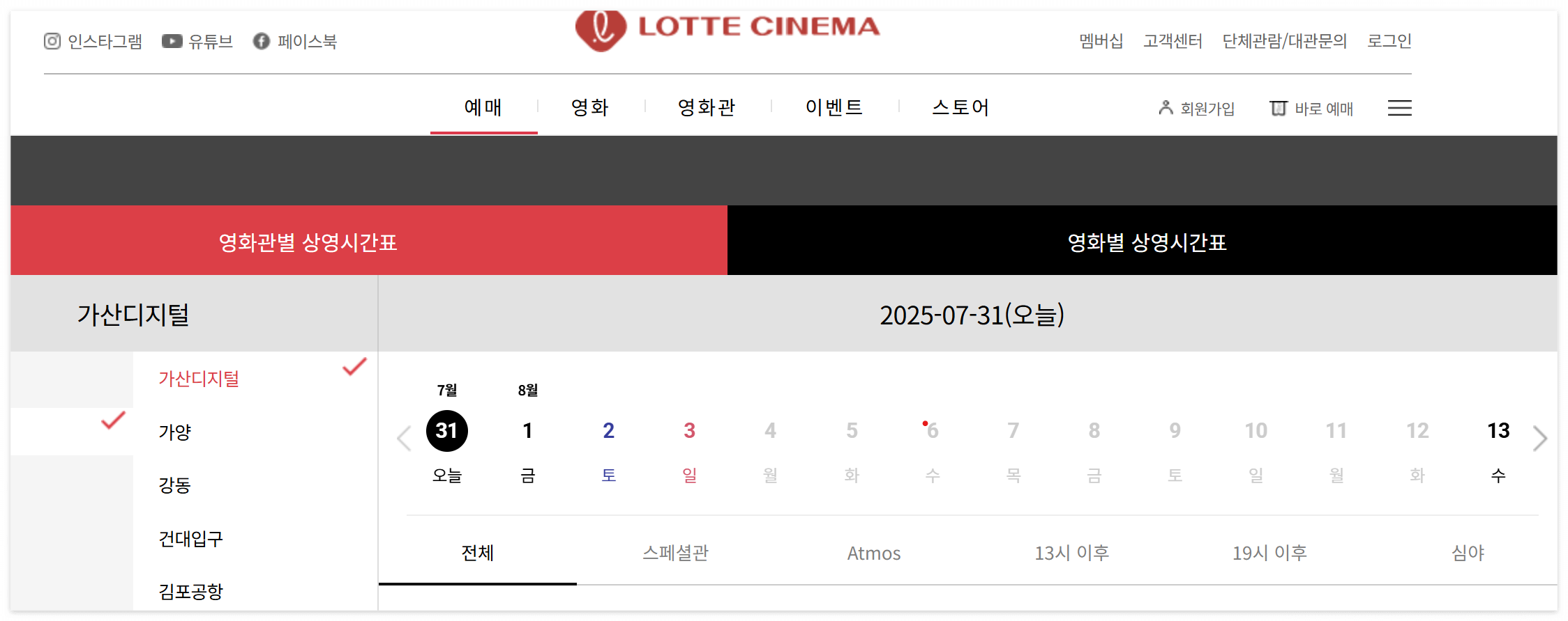 💡 아래 내용을 참고하여 상영시간표 확인이 온라인으로 가능합니다